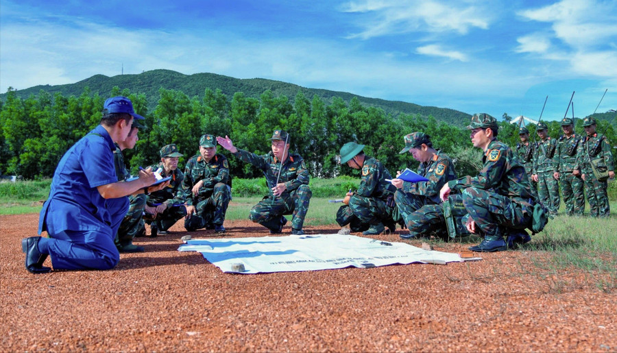Giao nhiệm vụ cho các lực lượng tại thực địa trong luyện tập phương án bảo vệ mục tiêu đặc biệt quan trọng. Ảnh: Anh Tuấn