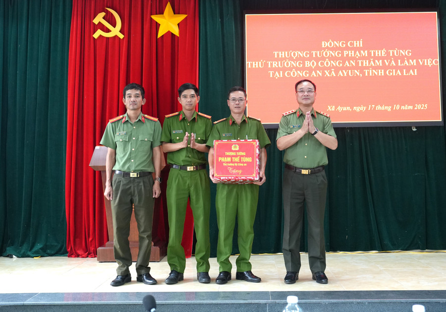 Sáng cùng ngày, Thượng tướng Phạm Thế Tùng cũng đã có buổi làm việc với Công an xã Ayun (tỉnh Gia Lai) để kiểm tra, đánh giá toàn diện các mặt công tác an ninh sau khi triển khai mô hình chính quyền địa phương 2 cấp.
