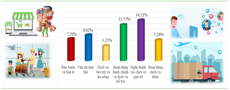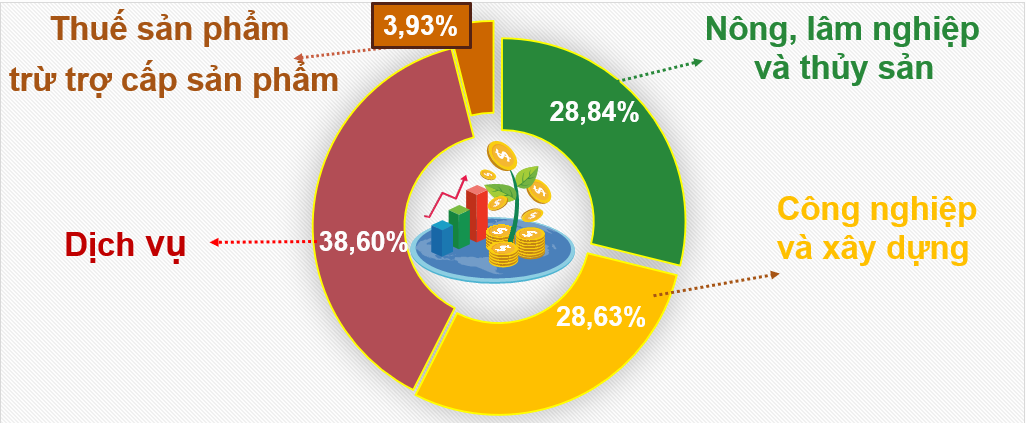 - Dịch vụ ước đạt 104.499,5 tỷ đồng, chiếm 38,60%;