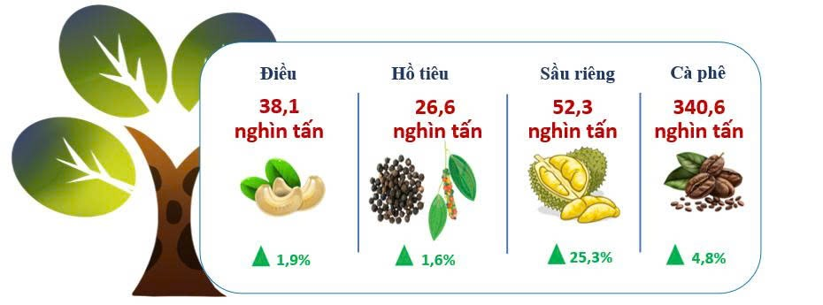 - Chỉ số nhóm sản phẩm từ cây lâu năm giảm 9% so cùng kỳ, giảm mạnh ở cam, quý và các loại quả có múi.