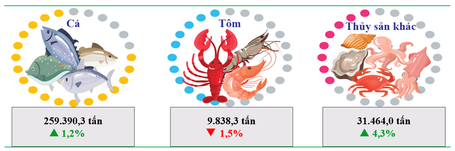 - Chỉ số nhóm thủy sản tăng 1,5% so cùng kỳ; trong đó, chỉ số nhóm thủy sản khai thác tăng 0,2% so cùng kỳ; chỉ số nhóm thủy sản nuôi trồng tăng 11,4% so cùng kỳ do bão lũ gây thiệt hại cho người dân.
