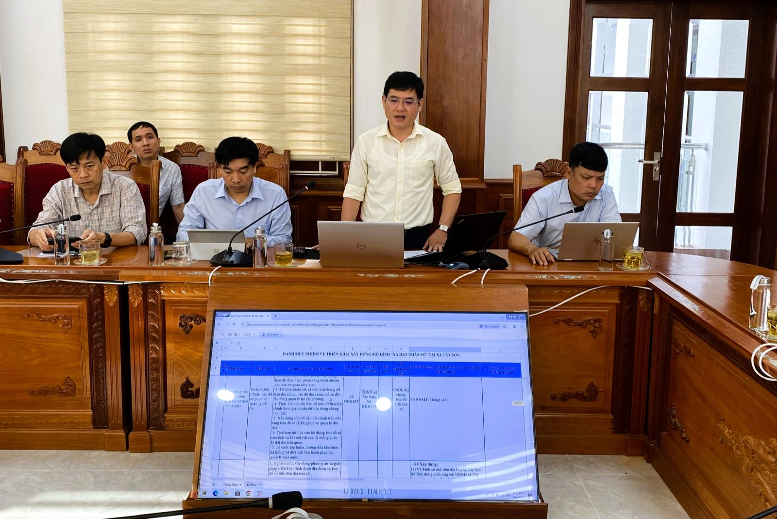 Tại cuộc họp, các đại biểu đã nghe báo cáo tổng thể dự thảo Kế hoạch xây dựng mô hình “Xã hạt nhân số” tại xã Tây Sơn, trong đó tập trung vào các giải pháp công nghệ phục vụ xây dựng cơ sở dữ liệu địa chính, bản đồ số nhà, định danh địa điểm, dữ liệu quản lý khoáng sản và một số tiện ích số phục vụ quản trị địa phương.