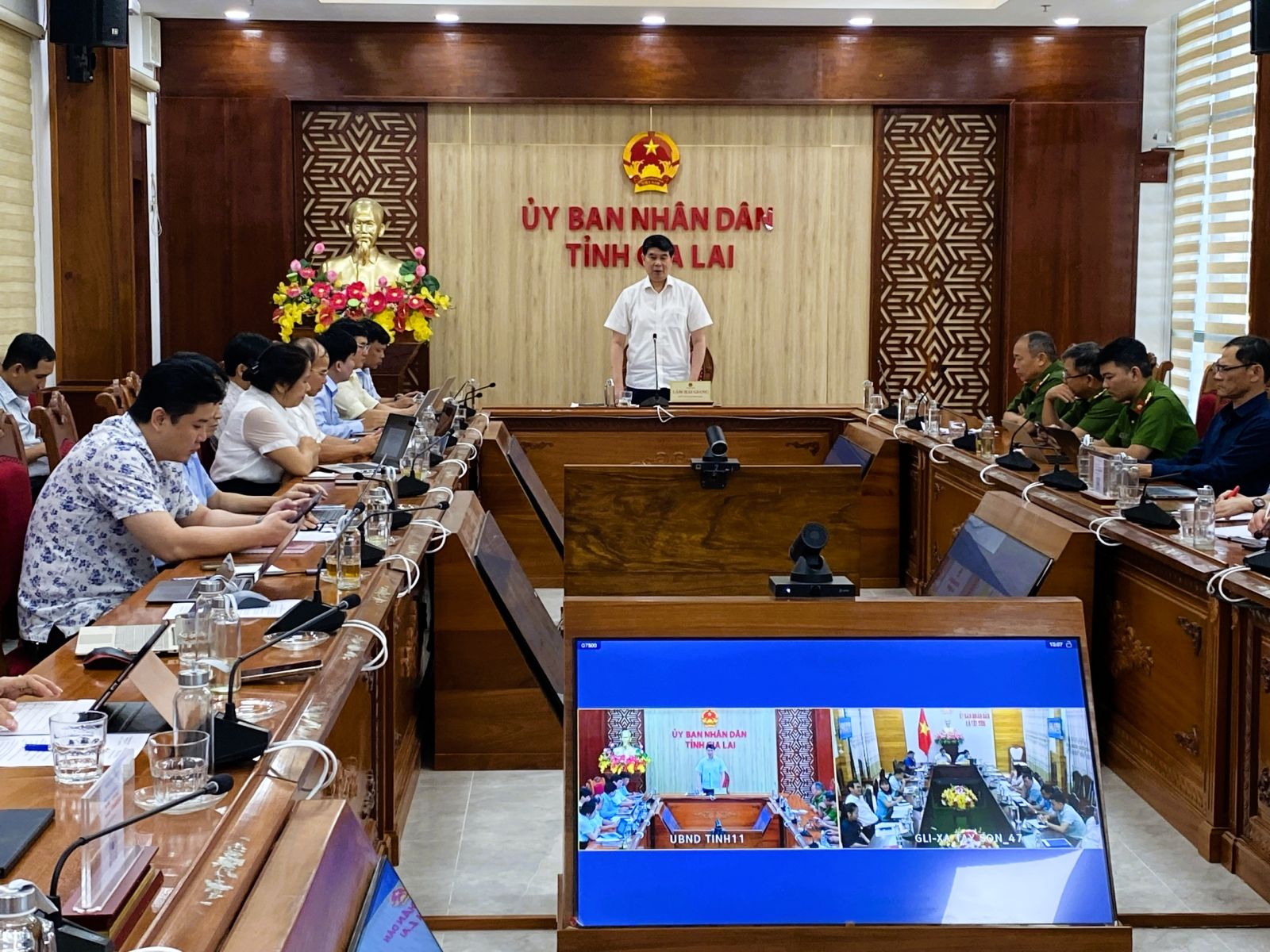 Dự họp có lãnh đạo các sở, ban, ngành gồm: Công an tỉnh, Sở Khoa học và Công nghệ, Sở Nông nghiệp và Môi trường, Sở Xây dựng, Sở Tài chính, Sở Nội vụ, Sở Công Thương, Sở Văn hóa, Thể thao và Du lịch, Sở Giáo dục và Đào tạo, Sở Y tế; Văn phòng UBND tỉnh, Tỉnh đoàn và Trung tâm Đổi mới sáng tạo Gia Lai. Cuộc họp được kết nối trực tuyến đến điểm cầu xã Tây Sơn.