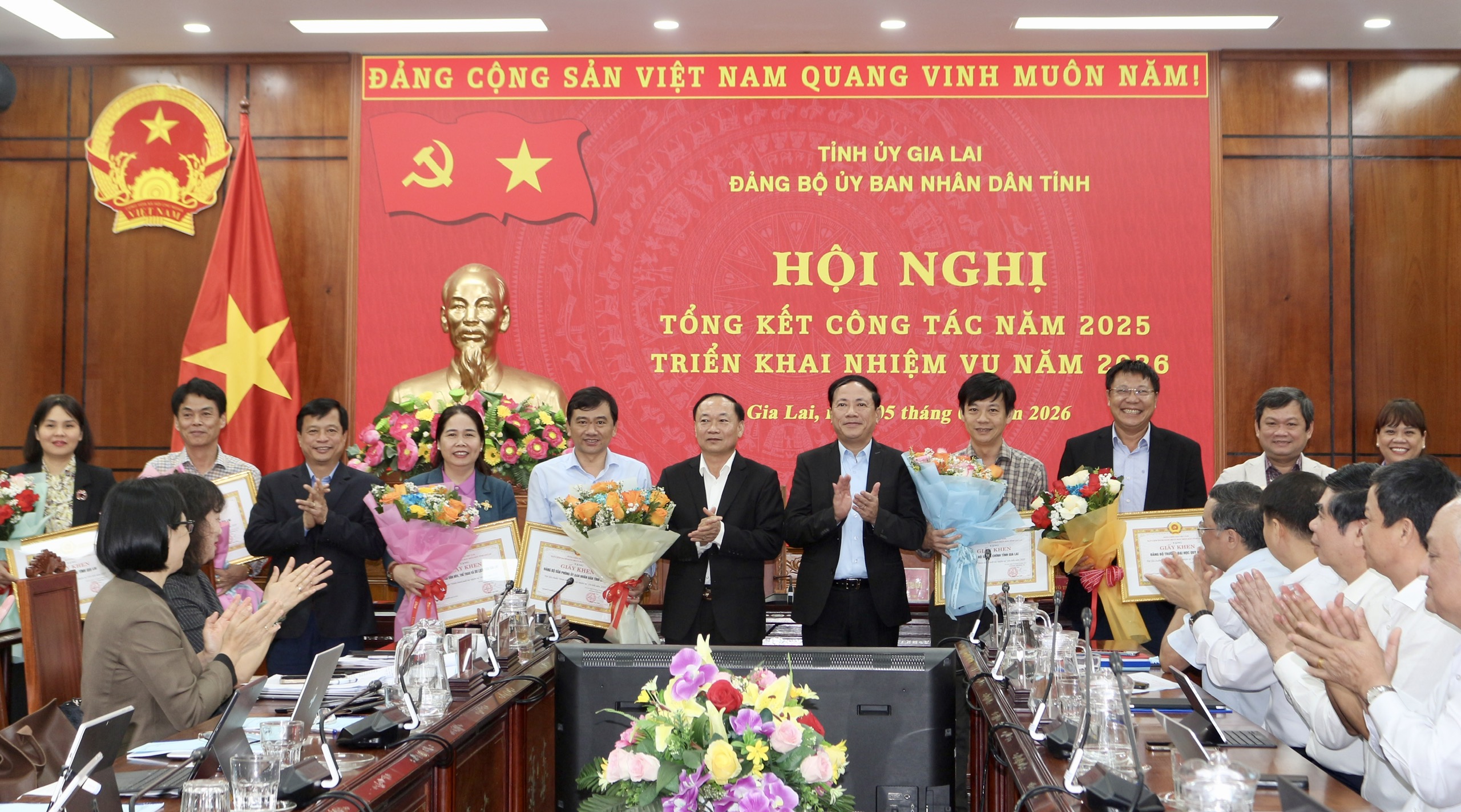 Dịp này, Đảng ủy UBND tỉnh đã tặng Giấy khen cho 14 tổ chức cơ sở đảng hoàn thành xuất sắc nhiệm vụ năm 2025./.
