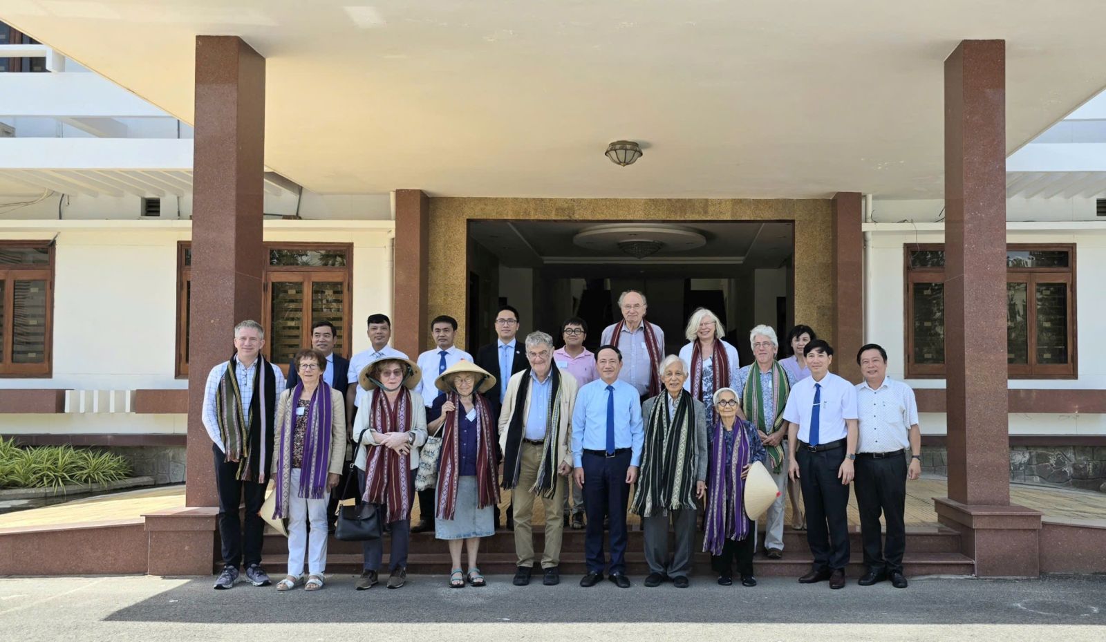 The Chairman of the Provincial People’s Committee and leaders of departments and agencies pose for a group photo with Professor Serge Haroche and other scientists.