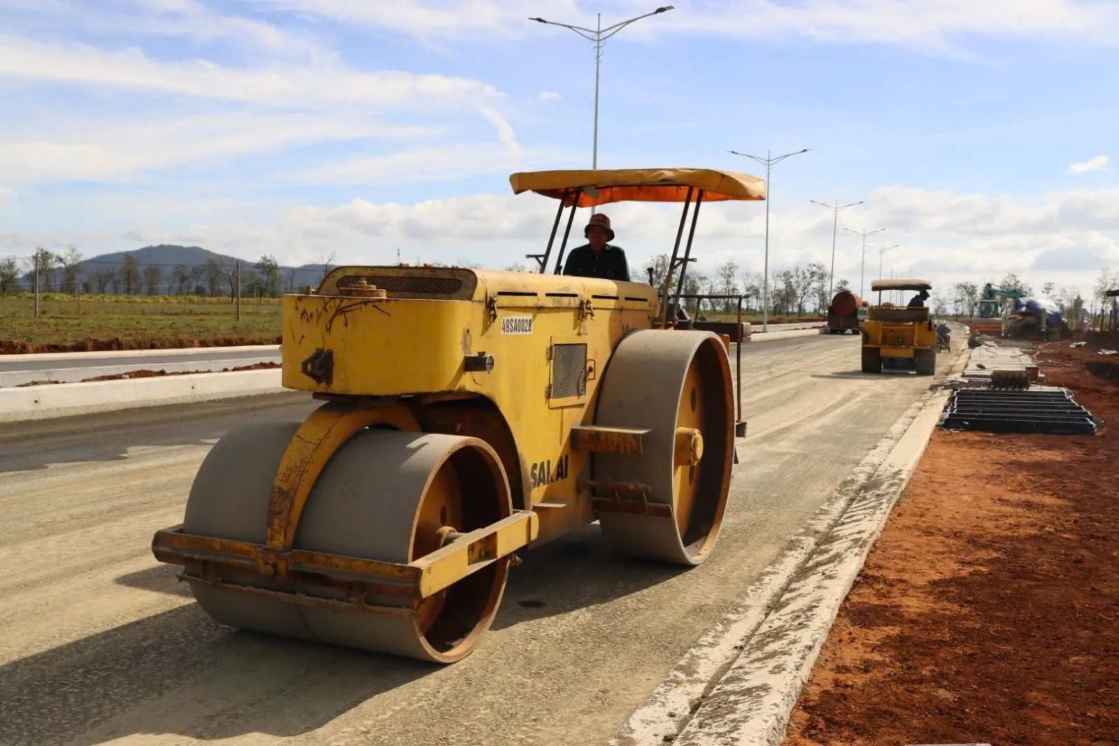 A road roller compacts the roadbed at the Eastern Gia Lai Economic Corridor Road project. (Photo: SGGP)