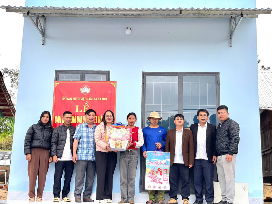 Trao Nhà Đại đoàn kết cho hộ nghèo và cận nghèo tại làng Brang Đak Kliết.Ngày 11-2, Ban Thường trực Ủy ban MTTQ Việt Nam xã Ya Hội (tỉnh Gia Lai) tổ chức bàn giao 2 căn Nhà Đại đoàn kết cho hộ nghèo và cận nghèo tại làng Brang Đak Kliết, góp phần giúp các gia đình ổn định cuộc sống, vui xuân, đón Tết Bính Ngọ 2026.