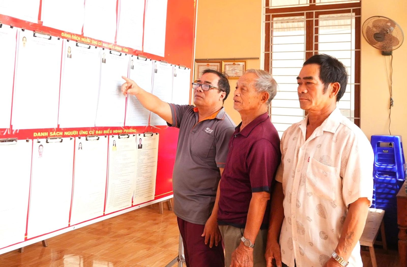 Tại các khu dân cư ven biển, công tác chuẩn bị bầu cử phải tính đến đặc thù nghề nghiệp của người dân. Khu phố Thiện Chánh 2 (phường Hoài Nhơn Bắc) có 2.284 cử tri, trong đó, khoảng 80% sống bằng nghề khai thác hải sản. Theo ông Nguyễn Thanh Hồng, Trưởng khu phố, Tổ trưởng tổ bầu cử số 31, địa phương có khoảng 1.300 cử tri là ngư dân đánh bắt xa bờ. “Thời điểm này có khoảng 300 người đang ở ngoài khơi. Nhiều ngư dân đã chủ động điều chỉnh kế hoạch ra khơi hoặc lùi chuyến biển để có mặt tại địa phương tham gia bầu cử”, ông Hồng cho biết. Những ngày này, tại nhà văn hóa khu phố, nơi đặt điểm bỏ phiếu, công tác chuẩn bị bầu cử được triển khai khẩn trương. Danh sách cử tri và danh sách người ứng cử ĐBQH Khóa XVI, đại biểu HĐND các cấp nhiệm kỳ 2026 - 2031 được niêm yết công khai để người dân theo dõi, tìm hiểu. Theo ông Hồng, bên cạnh việc chuẩn bị cơ sở vật chất, địa phương cũng tăng cường tuyên truyền để ngư dân nắm rõ thời gian bầu cử, từ đó chủ động sắp xếp công việc phù hợp.