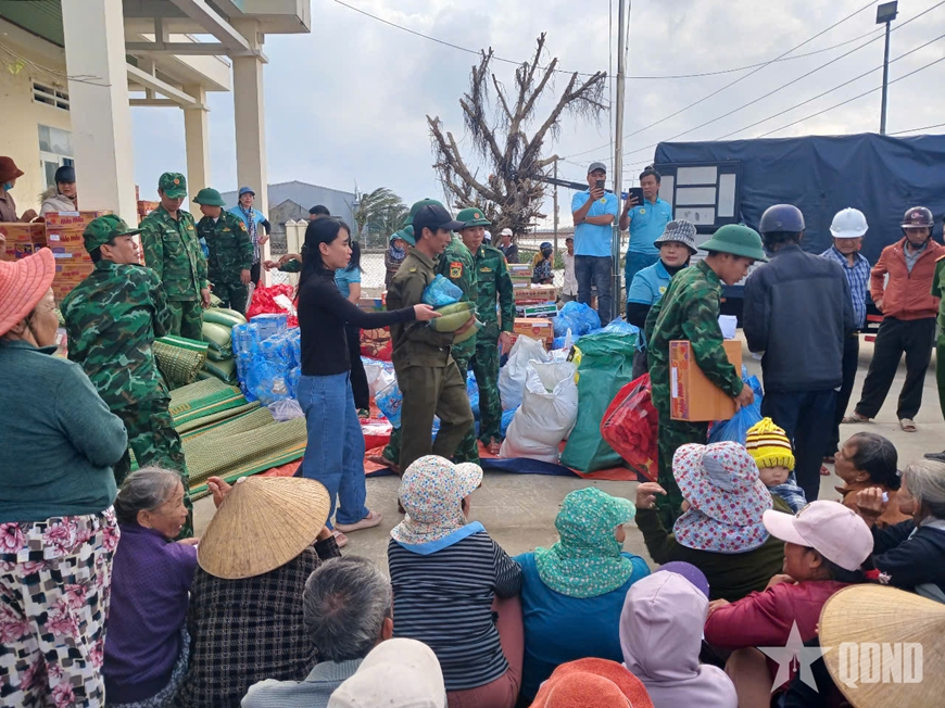 Đồn Biên phòng Nhơn Lý cử 12 cán bộ, chiến sĩ giúp bà Hồ Thị Lan, 90 tuổi, sống 1 mình tại thôn Mỹ Trung, xã Tuy Phước Đông dọn dẹp vệ sinh, chặt tỉa cây ngã đổ, sửa chữa lại nhà cửa, khắc phục hậu quả bão số 13 và đợt ngập lụt xảy ra vừa qua. Đồn Biên phòng Cát Khánh phối hợp vận động trao tặng 4,5 tấn gạo và 100 suất quà (trị giá 800.000 đồng/suất), hỗ trợ nhân dân bị ảnh hưởng lũ lụt, tại địa bàn xã Cát Tiến, xã Ngô Mây.
