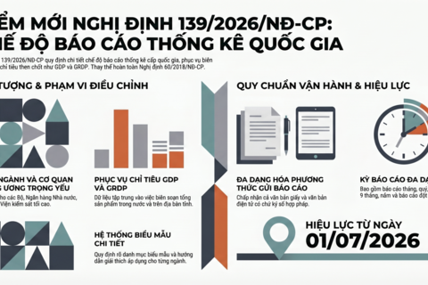 (gialai.gov.vn) – Ngày 07/4/2026, Chính phủ ban hành Nghị định số 139/2026/NĐ-CP quy định chi tiết nội dung chế độ báo cáo thống kê cấp quốc gia. Nghị định nhằm hoàn thiện hệ thống thu thập thông tin thống kê phục vụ biên soạn các chỉ tiêu kinh tế vĩ mô quan trọng như ...