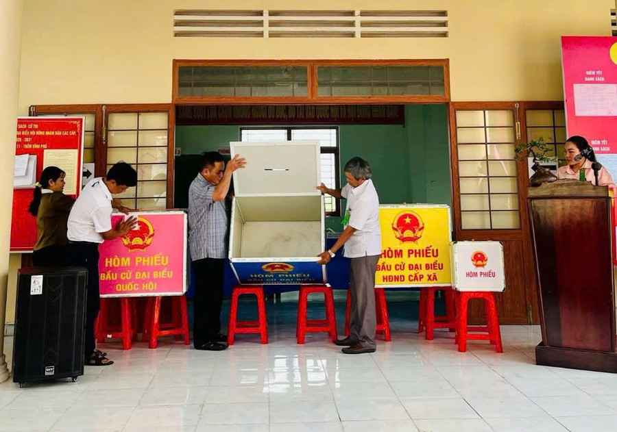 Buổi vận hành thử nghiệm được tổ chức tại khu vực bỏ phiếu số 11 - trụ sở thôn Vĩnh Phú.
