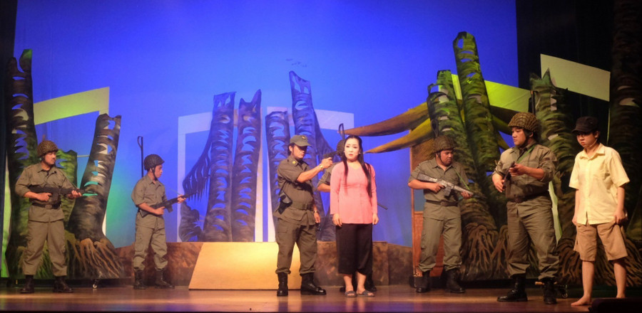 Cảnh diễn trong vở ca kịch bài chòi Dòng sông kể chuyện. Ảnh: Ngọc Nhuận