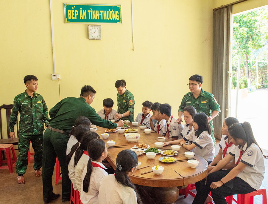 Đề án “Mỗi tuần giúp đỡ một hộ nghèo ở khu vực biên giới” được triển khai tại 6 đồn Biên phòng phát huy hiệu quả. Từ tháng 12-2024 đến tháng 8-2025, các đơn vị đã giúp đỡ 321 hộ nghèo, cận nghèo; vận động các cơ quan, DN, cá nhân hỗ trợ 83 suất quà với tổng trị giá 68,6 triệu đồng và 14 phương tiện sinh kế trị giá 88 triệu đồng. Mô hình “Bếp ăn tình thương” hỗ trợ 16 học sinh với số tiền 7 triệu đồng/tháng, được cấp ủy, chính quyền đánh giá cao.