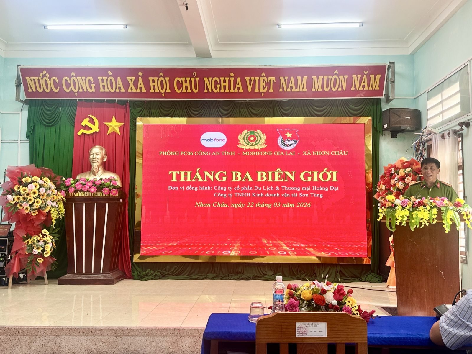 Bên cạnh nhiệm vụ chuyên môn, Phòng PC06 còn quan tâm thực hiện tốt công tác an sinh xã hội, tổ chức trao tặng 41 suất quà cho các hộ gia đình chính sách, hộ có hoàn cảnh khó khăn và các em học sinh trên địa bàn; trao tặng công trình “Tủ thuốc thanh niên”, góp phần hỗ trợ địa phương trong công tác chăm sóc sức khỏe ban đầu cho Nhân dân. Đồng thời, đơn vị đã trao tặng Ảnh Bác Hồ và cờ Tổ quốc cho Đoàn Thanh niên xã Nhơn Châu, phục vụ công tác tuyên truyền, giáo dục truyền thống tại cơ sở.