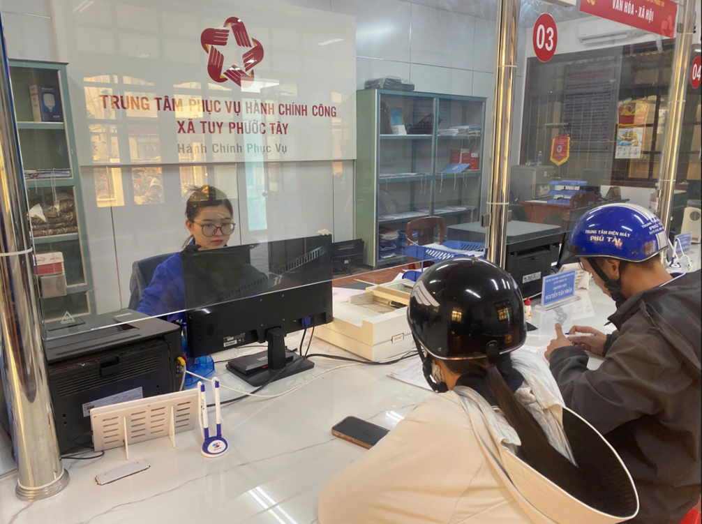 Tổ Công nghệ số cộng đồng hỗ trợ cho người dân và doanh nghiệp tại Trung tâm phục vụ hành chính công xã Tuy Phước Tây