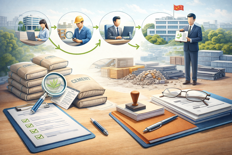 - Thẩm định, xử lý hồ sơ tại Phòng Quản lý đầu tư xây dựng và Vật liệu xây dựng;