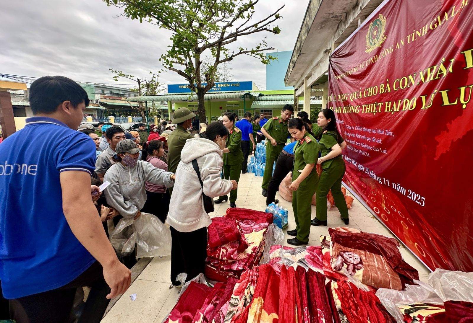 Tiếp đó, ngày 29/11/2025, Phòng PC06 tiếp tục phối hợp cùng các đoàn thể và mạnh thường quân tiến hành hỗ trợ người dân tại Khu phố 3, phường Quy Nhơn Bắc. Hơn 200 suất quà với tổng trị giá 120 triệu đồng, bao gồm gạo, chăn ấm và các nhu yếu phẩm phục vụ đời sống, đã được trao tận tay các hộ dân kèm theo những lời động viên chân thành, sự sẻ chia ấm áp, tiếp thêm tinh thần để bà con vượt qua thời điểm khó khăn.