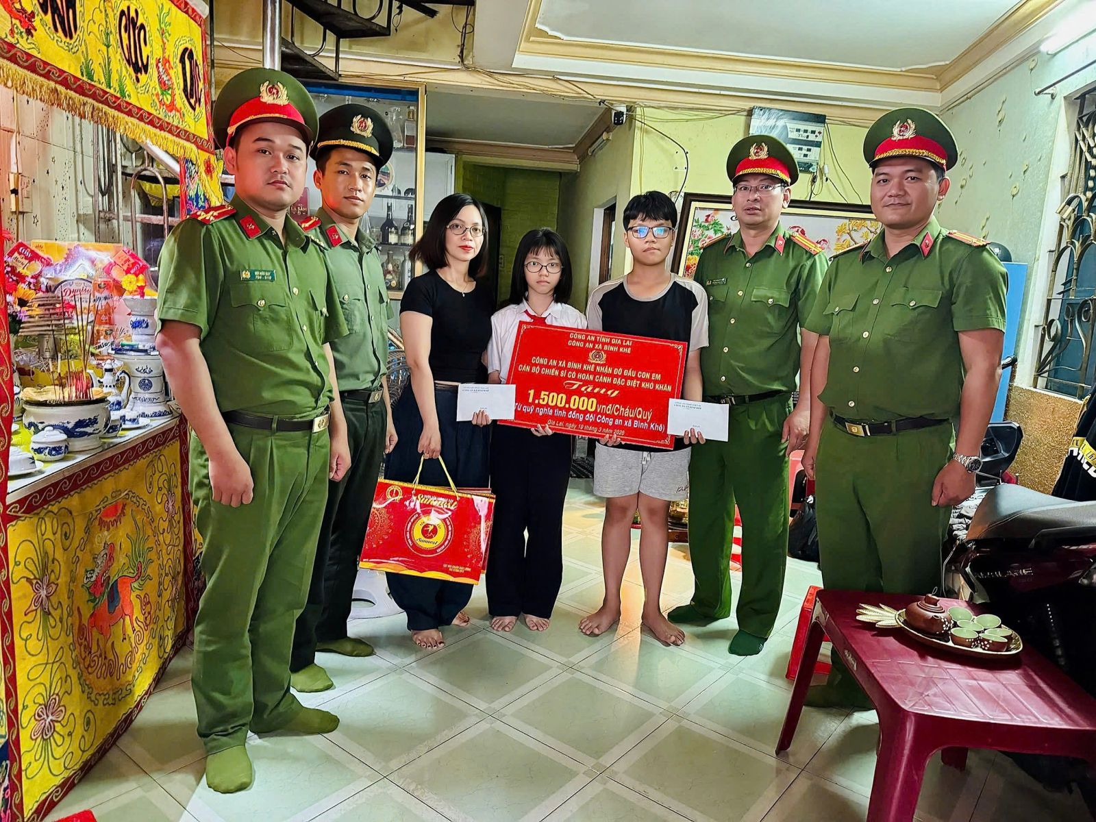 Tại xã Bình Khê, Công an xã nhận đỡ đầu 3 em nhỏ là con của cán bộ, chiến sĩ Công an xã có cha không may bị qua đời do bạo bệnh.