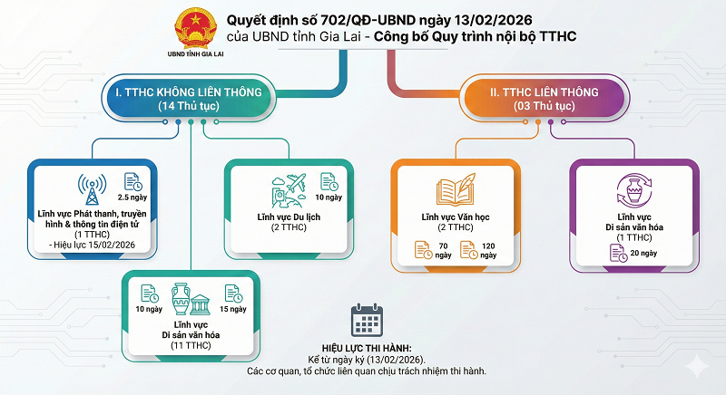 Theo đó, công bố quy trình nội bộ giải quyết 14 thủ tục hành chính không liên thông, gồm: