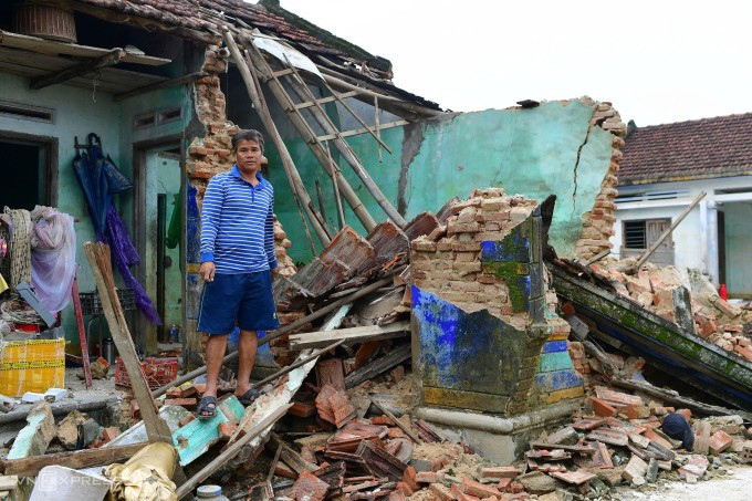Nhà anh Nguyễn Văn Linh, 47 tuổi, thôn Hiệp Đồng, xã Hòa Xuân, tỉnh Đăk Lăk bị lũ đánh sập. Ảnh: Thanh Tùng