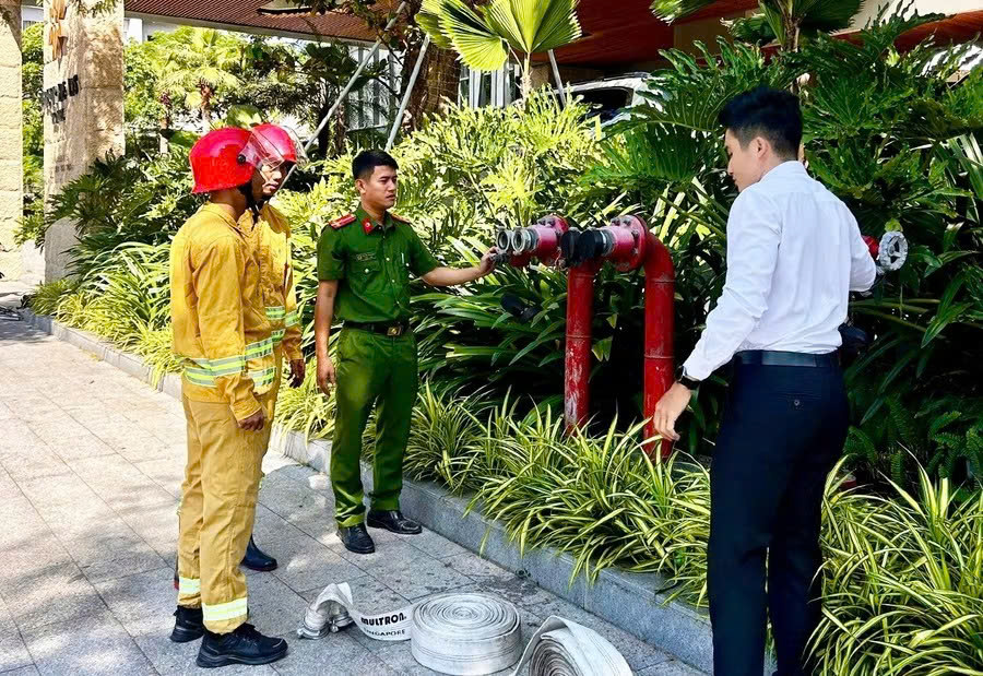 Việc kiểm tra đảm bảo an toàn cháy nổ tại các cơ sở kinh doanh lưu trú được lực lượng công an triển khai thường xuyên. Ảnh: K.A