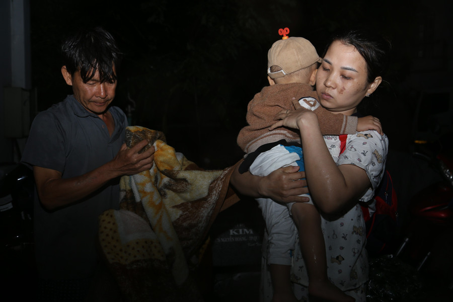 “Nhà tôi bị ngập sâu gần lút mái. Buổi chiều, hai vợ chồng cùng đứa con nhỏ ra nhà người bà con ở nhờ nên lực lượng cứu hộ mới tiếp cận được. Nhưng nhà vẫn còn mấy người chưa ra được, giờ không biết sao. Mong sao nước rút để mọi người được an toàn”-ông Toàn nói.