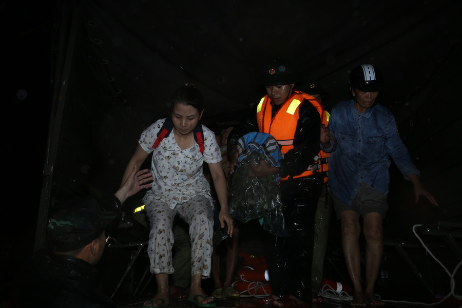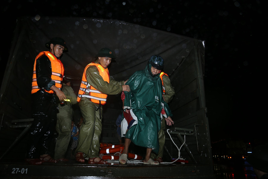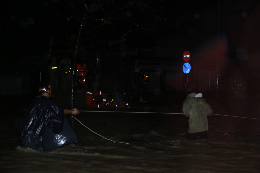 Nhiều người dân có nhà bị ngập sâu, nguy hiểm đến tính mạng được các lực lượng ứng cứu trong đêm. Ảnh: H.P