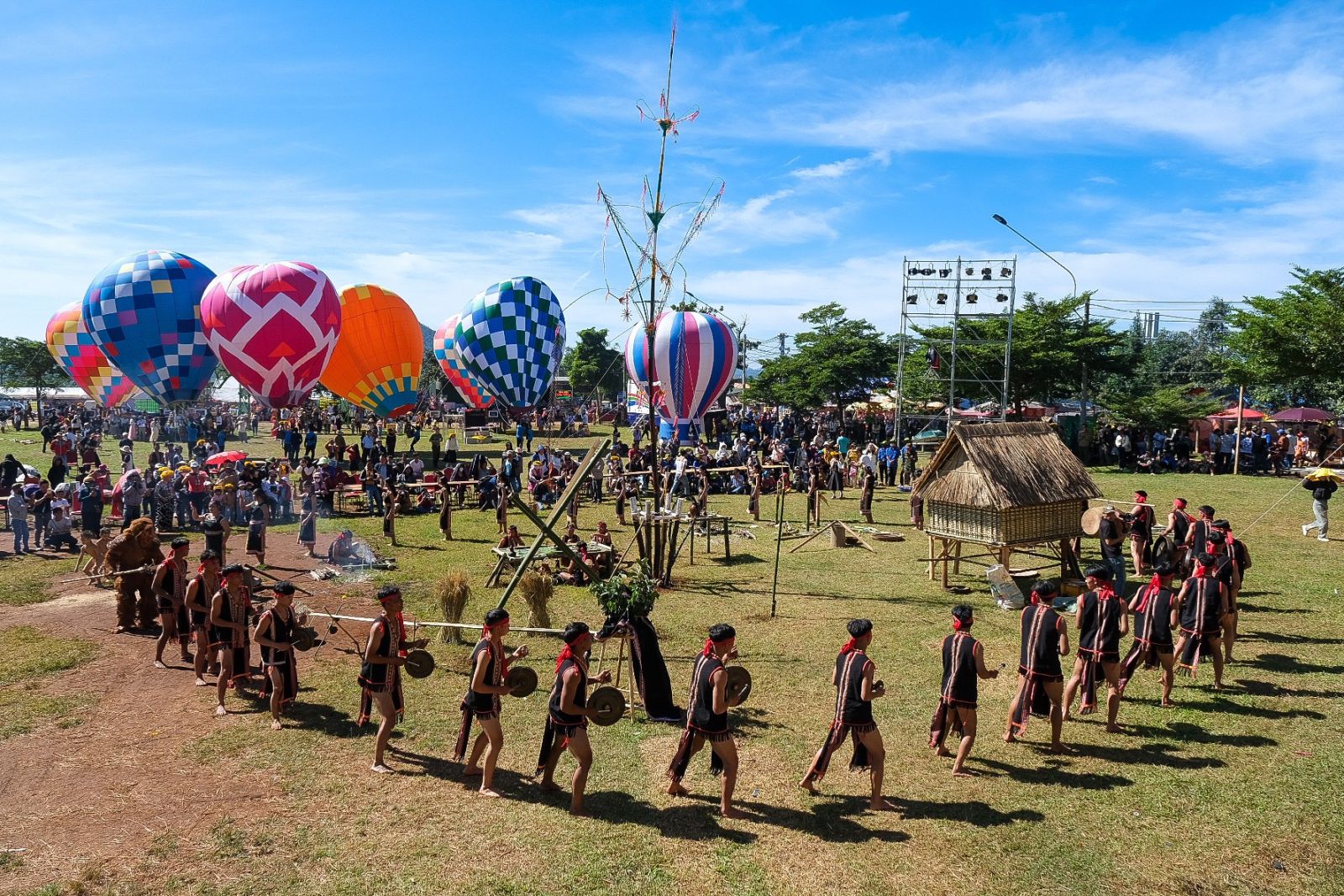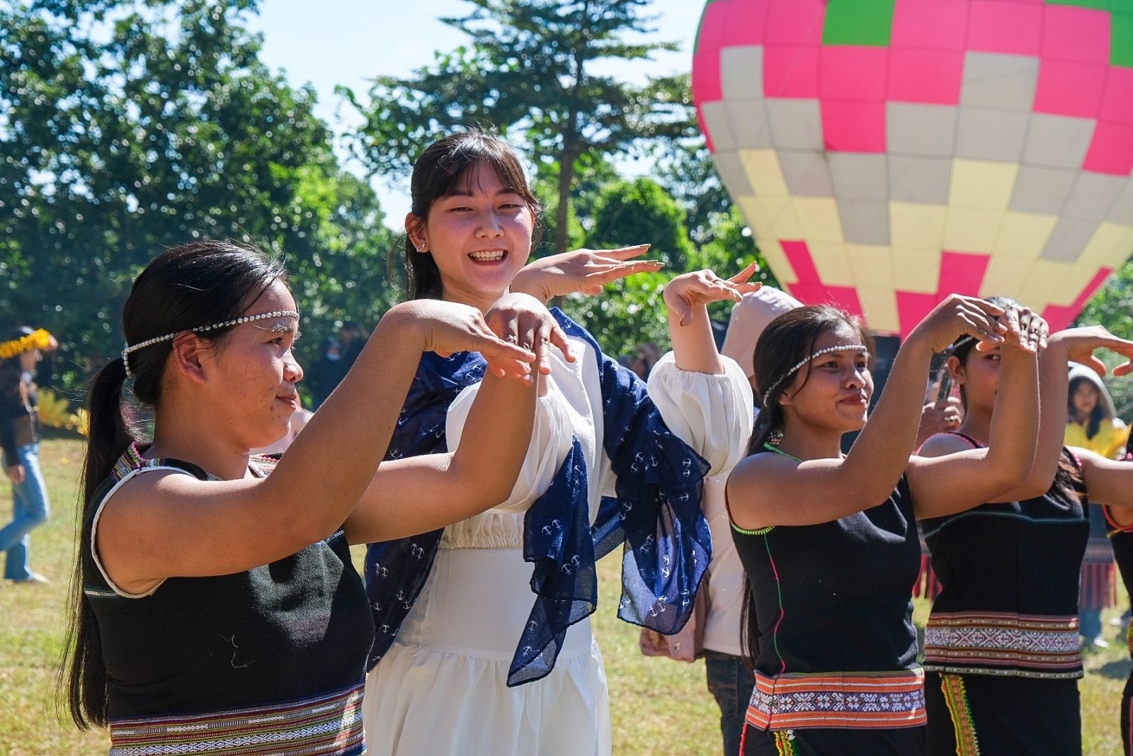 Du khách trải nghiệm lễ hội dân gian Tây Nguyên tại Tuần lễ hoa dã quỳ-Núi lửa Chư Đang Ya. Ảnh: MINH CHÂU