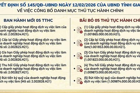 (gialai.gov.vn) - Tại Quyết định số 267/QĐ-UBND ngày 12 tháng 01 năm 2026, UBND tỉnh đã công bố Danh mục 06 thủ tục hành chính ban hành mới, 14 thủ tục hành chính bị bãi bỏ trong lĩnh vực An toàn bức xạ và hạt nhân thuộc phạm vi chức năng quản lý của Sở Khoa học và ...