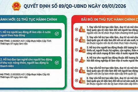 (gialai.gov.vn) - Tại Quyết định số 89/QĐ-UBND ngày 09/01/2026, UBND tỉnh đã công bố danh mục thủ tục hành chính (TTHC) ban hành mới và TTHC bị bãi bỏ trong lĩnh vực quản lý lao động ngoài nước và việc làm, thuộc phạm vi chức năng quản lý của Sở Nội vụ.