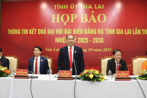 (gialai.gov.vn) - Ngay sau phiên bế mạc Đại hội đại biểu Đảng bộ tỉnh Gia Lai lần thứ I, nhiệm kỳ 2025 - 2030, trưa ngày 04/10, Tỉnh ủy Gia Lai đã tổ chức họp báo để thông tin về kết quả Đại hội.Chủ trì buổi họp báo có các đồng chí: Rah Lan Chung - Phó Bí thư Thường ...