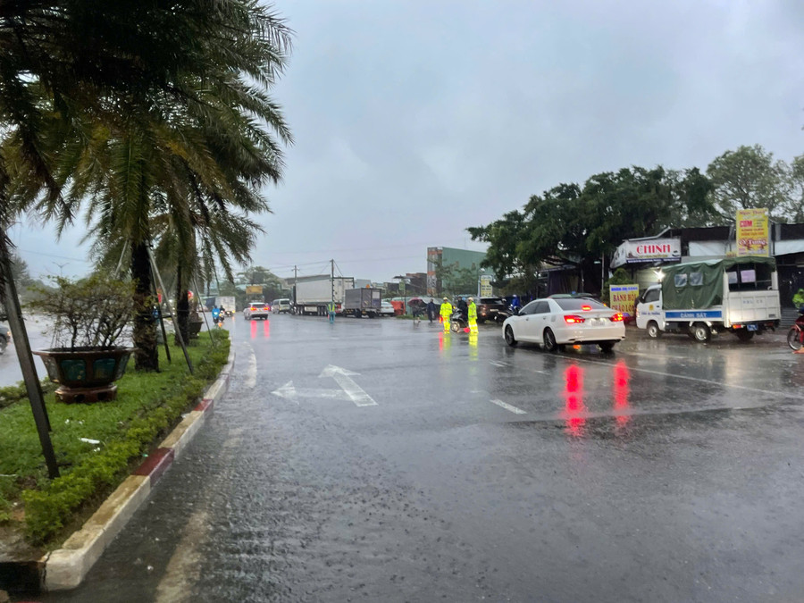 Lực lượng Công an điều tiết giao thông đoạn đường dẫn lên tuyến quốc lộ 1D, đoạn qua phường Quy Nhơn Nam. Ảnh: ĐVCC