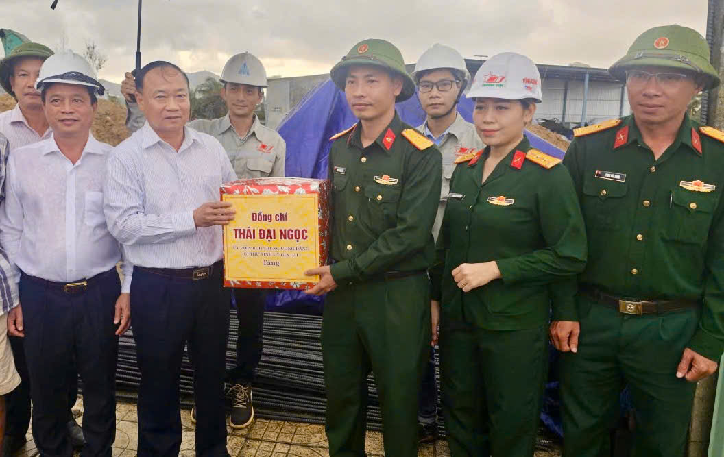 Dịp này, Bí thư Tỉnh ủy Thái Đại Ngọc đã tặng quà động viên các lực lượng tham gia hỗ trợ xây dựng nhà ở cho người dân bị thiệt hại do bão lũ gây ra./.