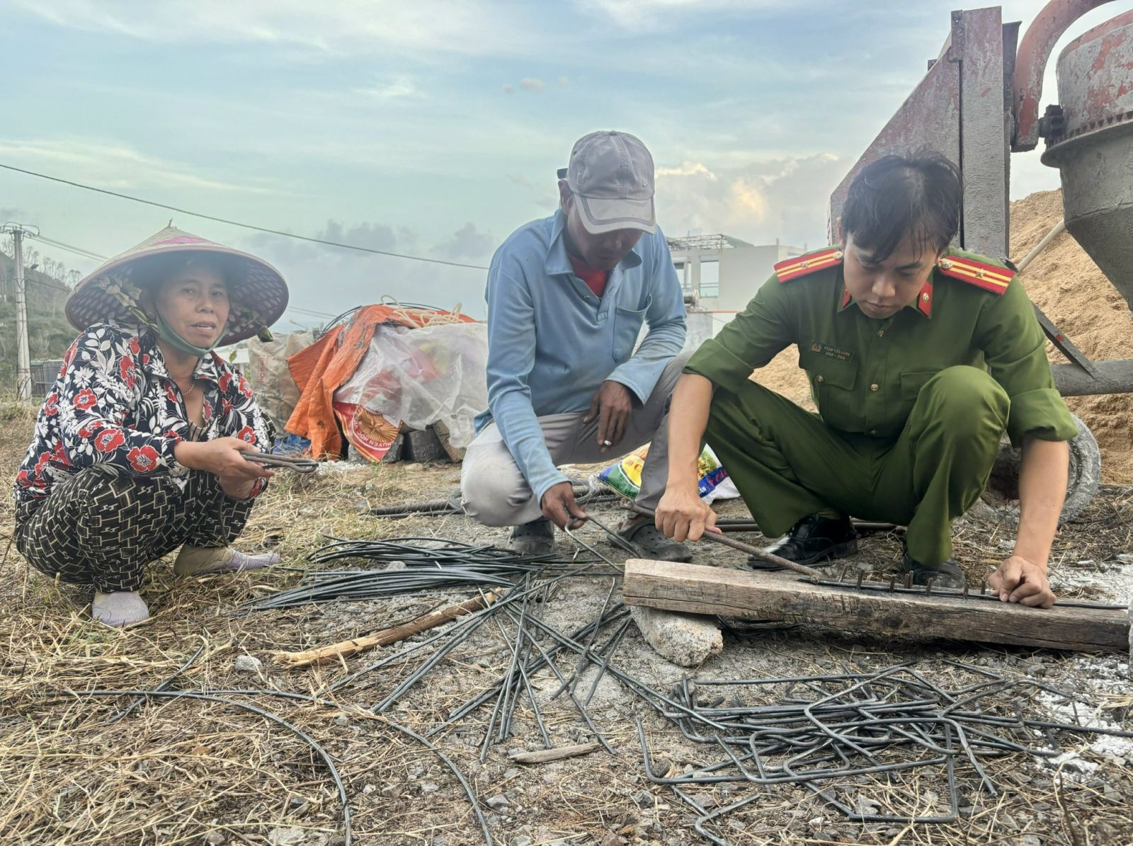 Lực lượng công an tham gia hỗ trợ xây dựng nhà cho người dân