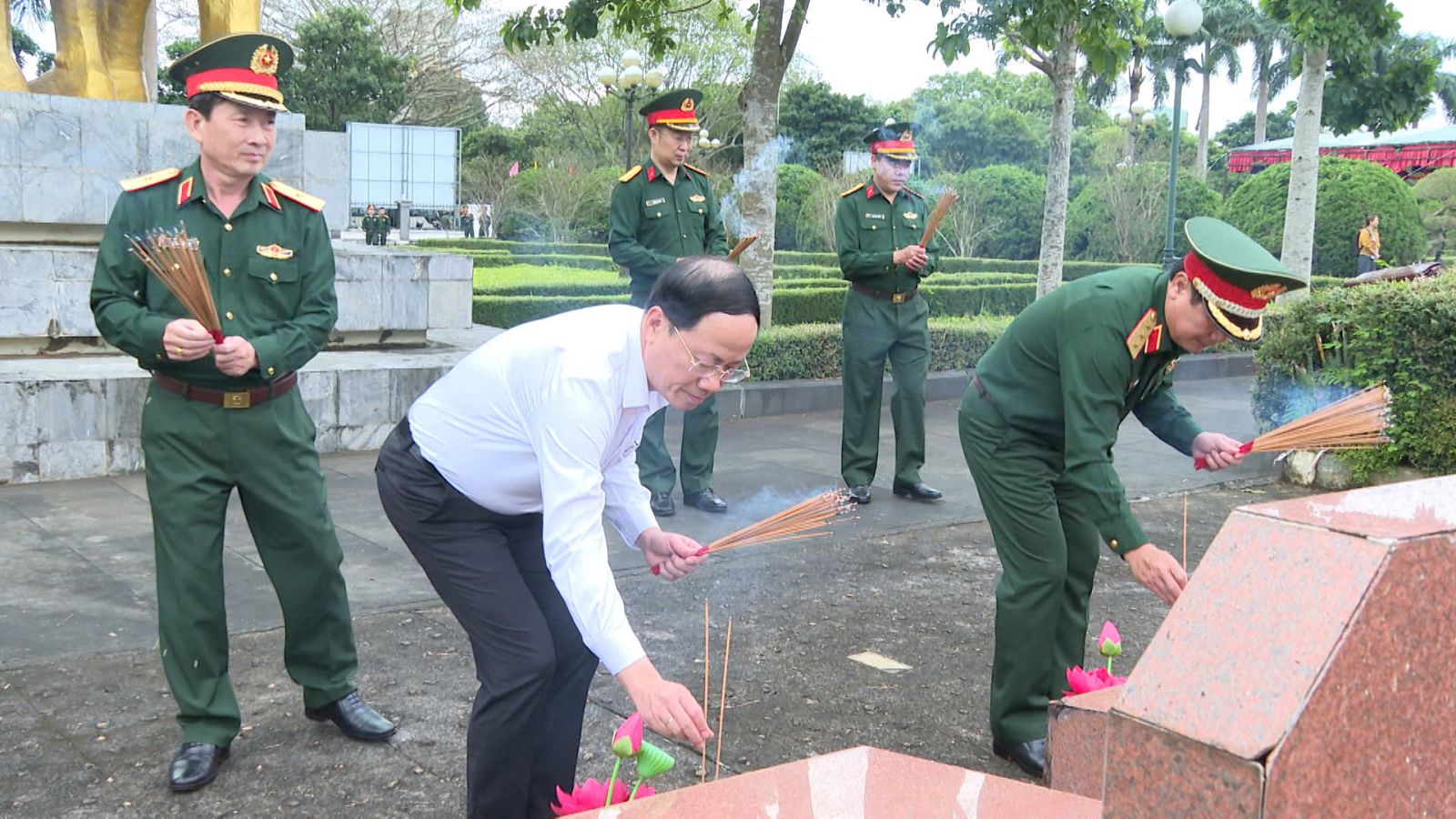 Các đại biểu dự lễ dâng hoa, dâng hương các anh hùng liệt sĩ