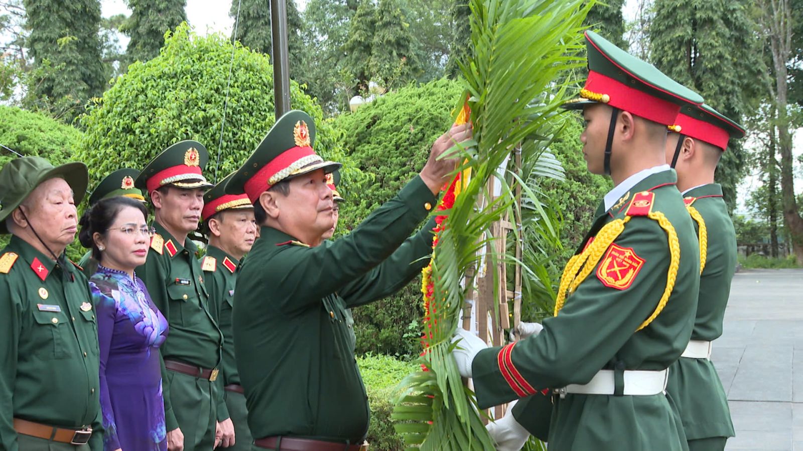 Thượng tướng Lê Huy Vịnh - Ủy viên Trung ương Đảng, Thứ trưởng Bộ Quốc phòng dâng hoa các anh hùng liệt sĩ