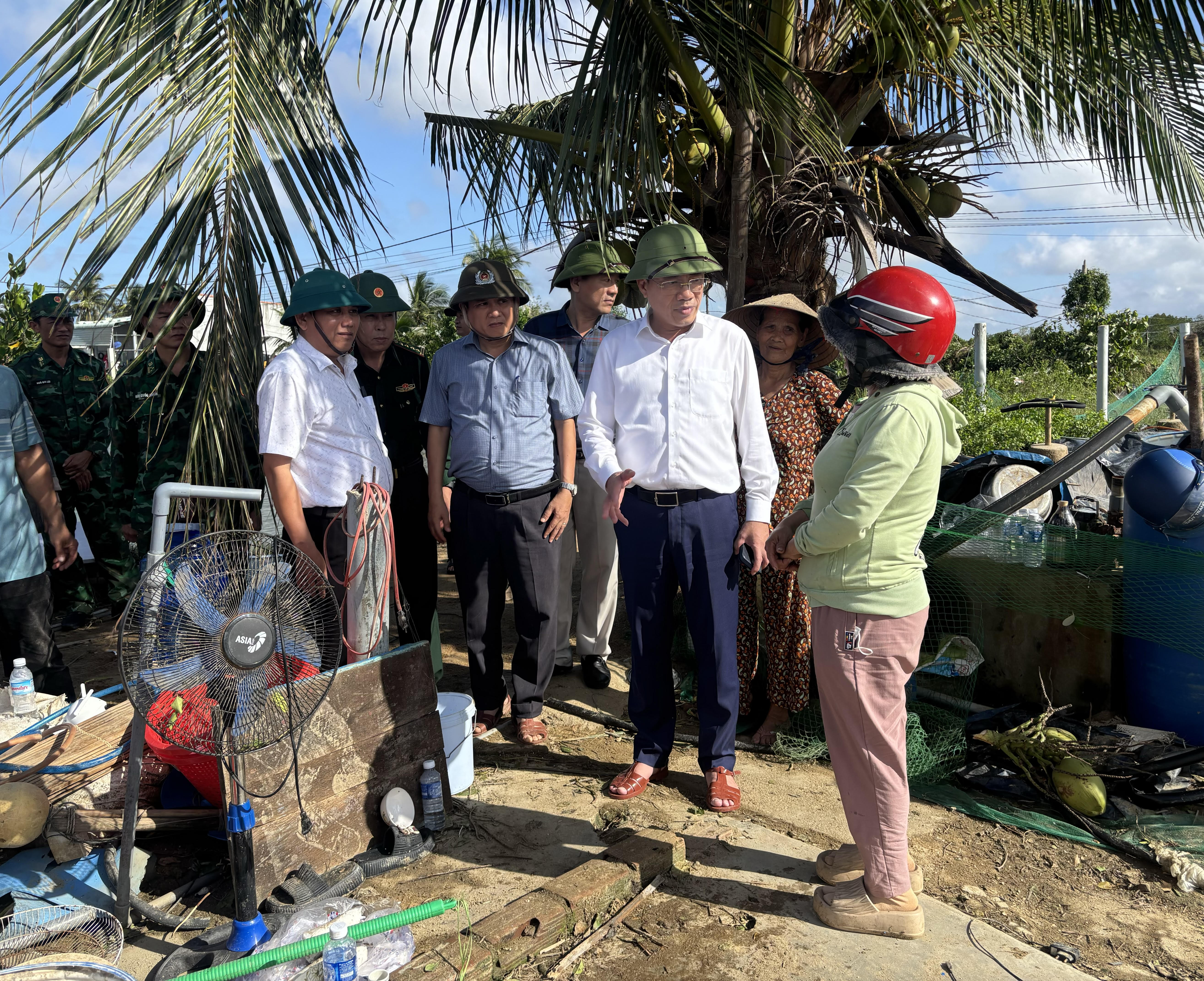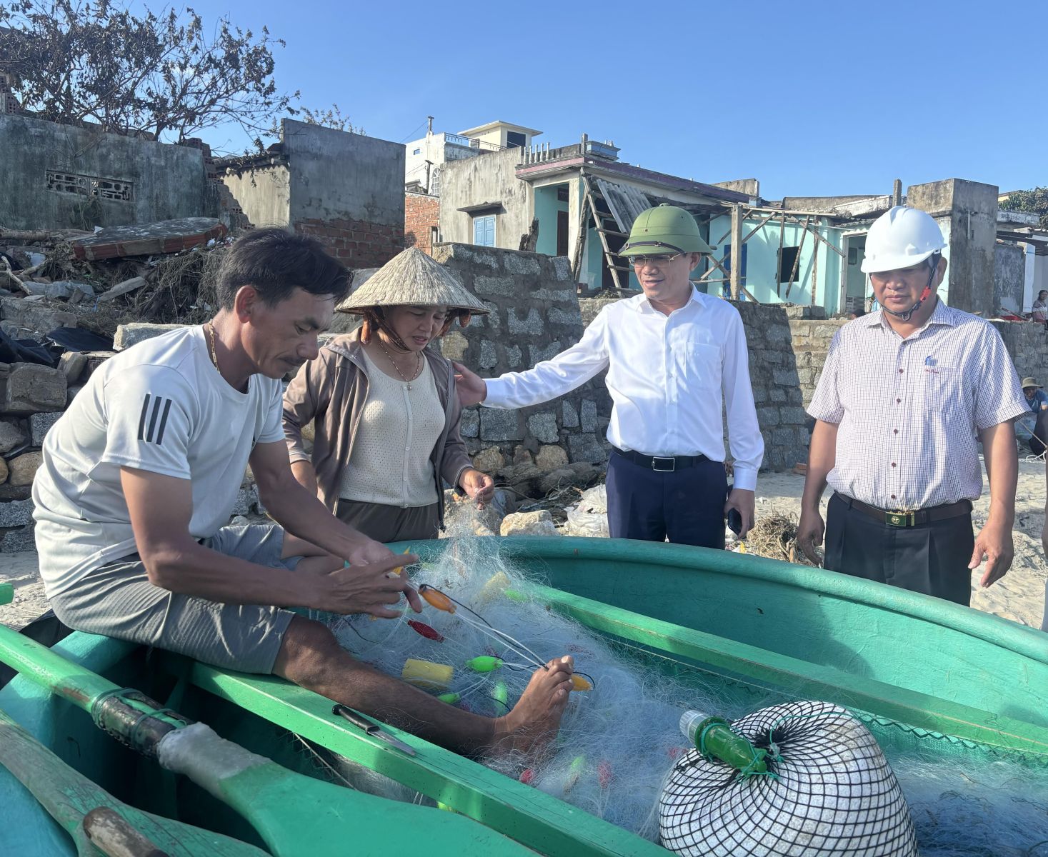Đến thăm các hộ dân bị sập nhà sau bão tại thôn An Xuyên 3, xã An Lương, Chủ tịch UBND tỉnh yêu cầu chính quyền địa phương rà soát, quy hoạch, vận động và hỗ trợ người dân xây dựng nhà ở tại khu tái định cư mới. Tuyệt đối không để xảy ra tình trạng người dân tự phát xây dựng nhà ở tại khu vực thường xuyên chịu tác động mạnh của bão. Đồng chí đề nghị chính quyền địa phương nhanh chóng triển khai các chính sách hỗ trợ ban đầu, giúp người dân từng bước vượt qua khó khăn, sớm ổn định cuộc sống. Đồng thời, hỗ trợ 60 triệu đồng/hộ đối với các hộ bị sập nhà hoàn toàn để xây dựng nhà mới tại khu tái định cư.