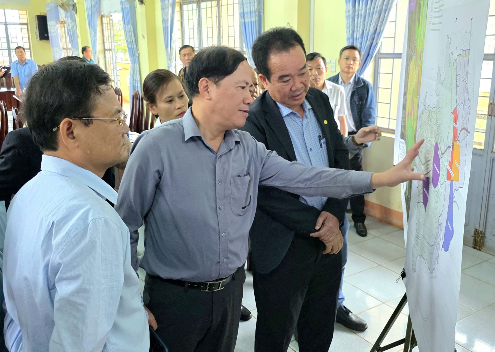 Chủ tịch UBND tỉnh Phạm Anh Tuấn và Phó Chủ tịch UBND tỉnh Nguyễn Tự Công Hoàng (bìa trái) nghe báo cáo Quy hoạch Khu trung tâm phường An Phú.