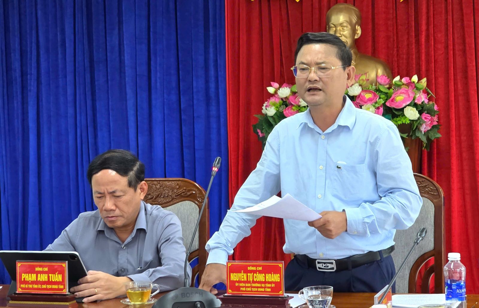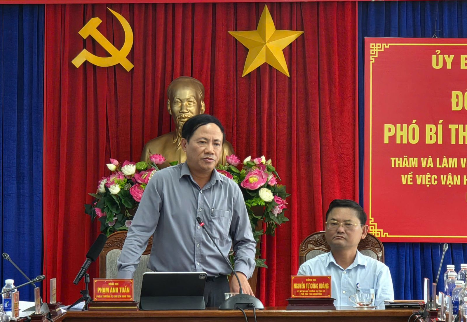 Phó Chủ tịch UBND tỉnh Nguyễn Tự Công Hoàng (bìa phải) phát biểu tại buổi làm việc.