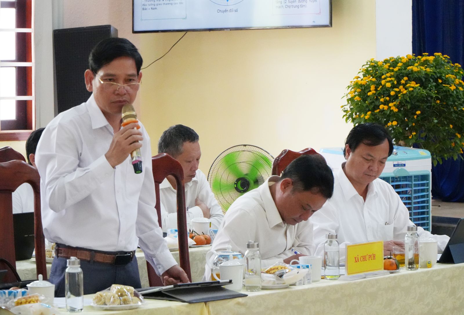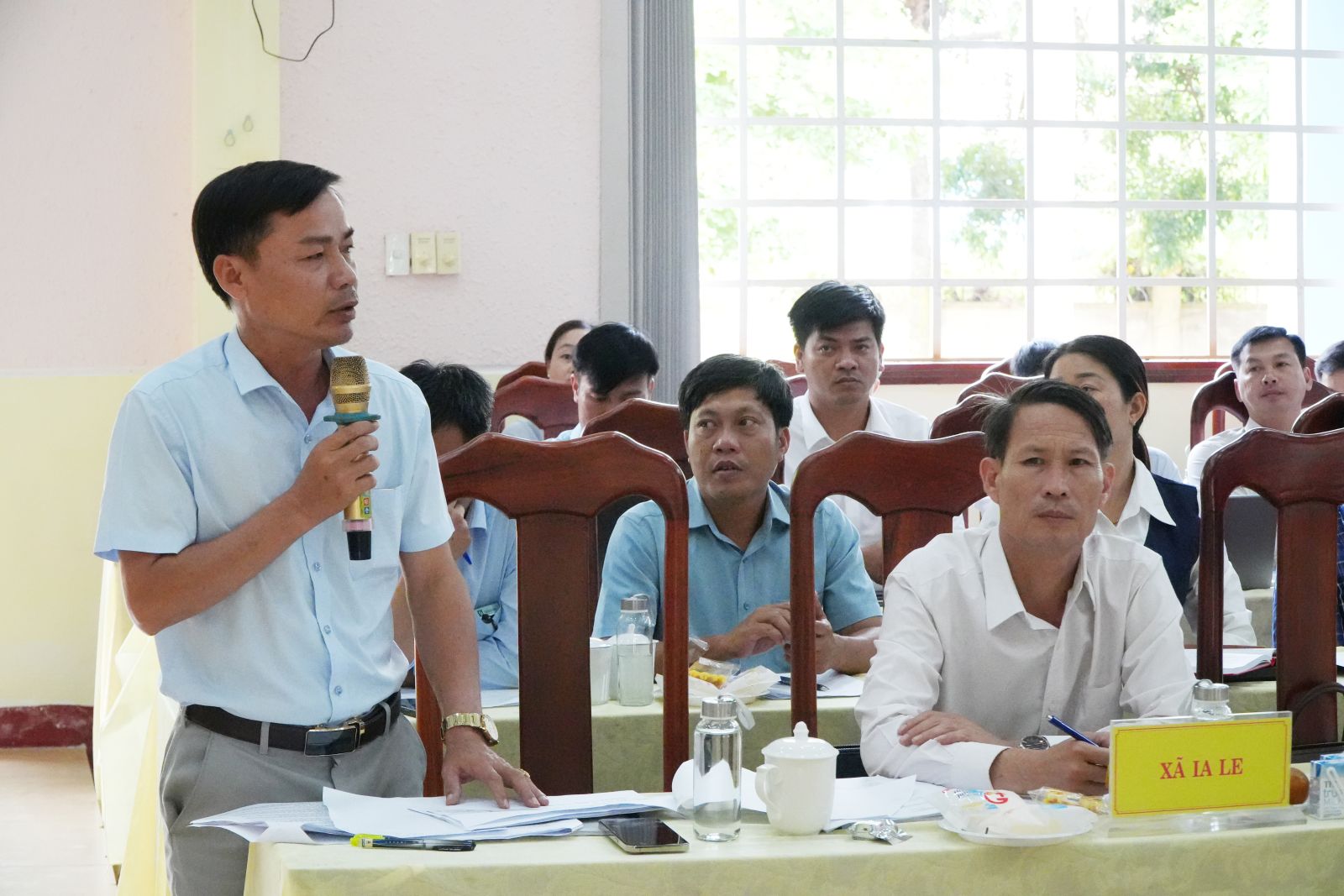 Chủ tịch UBND xã Ia Le Lưu Xuân Thành tham gia ý kiến tại buổi làm việc.
