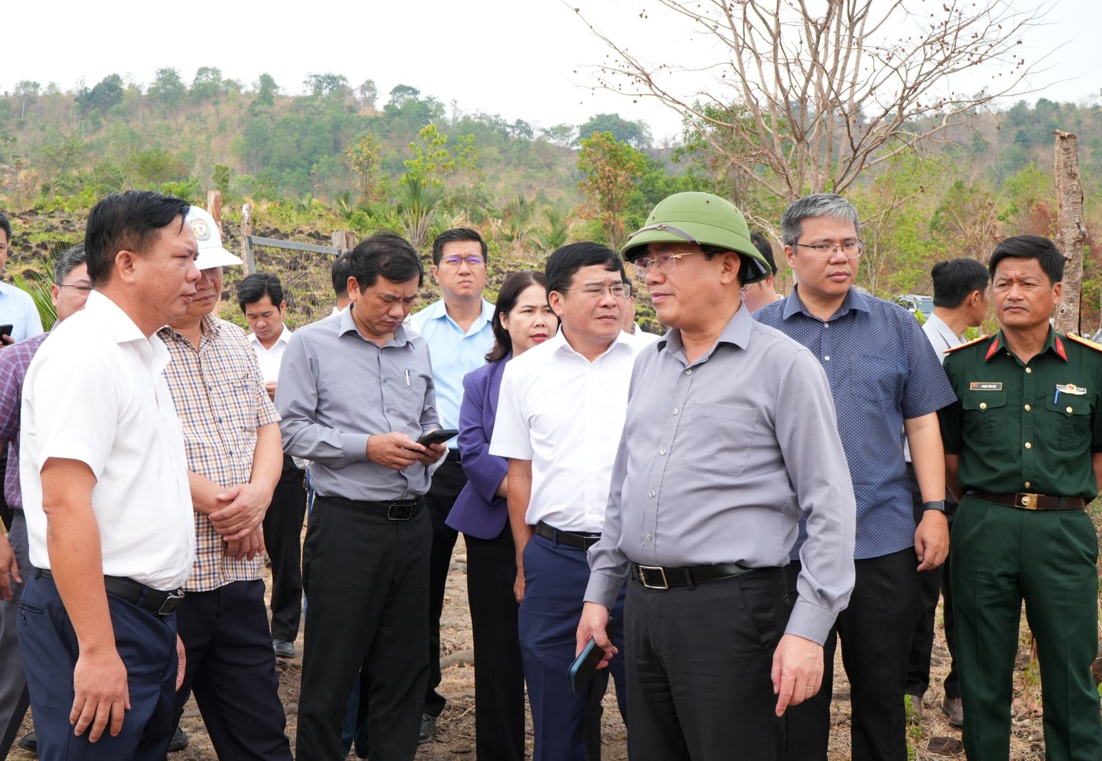 Trước khi làm việc với các địa phương, đoàn đã khảo sát thực tế một số vị trí quy hoạch, dự án trọng điểm. Tại xã Ia Le, đoàn khảo sát vị trí quy hoạch cụm công nghiệp tại thôn Ia Bia; khu vực đề xuất xây dựng hồ chứa nước Đông Xuân tại thôn Phú Bình.