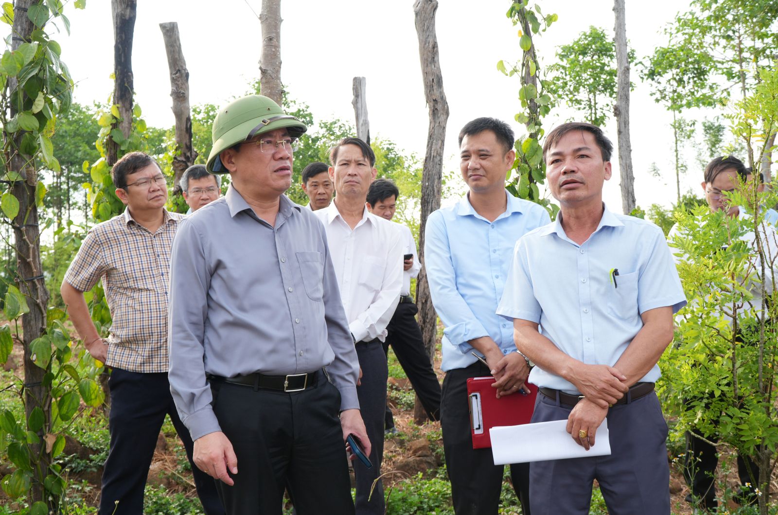 Đoàn công tác khảo sát vị trí đề xuất xây dựng hồ chứa nước Đông Xuân, tại thôn Phú Bình, xã Ia Le.