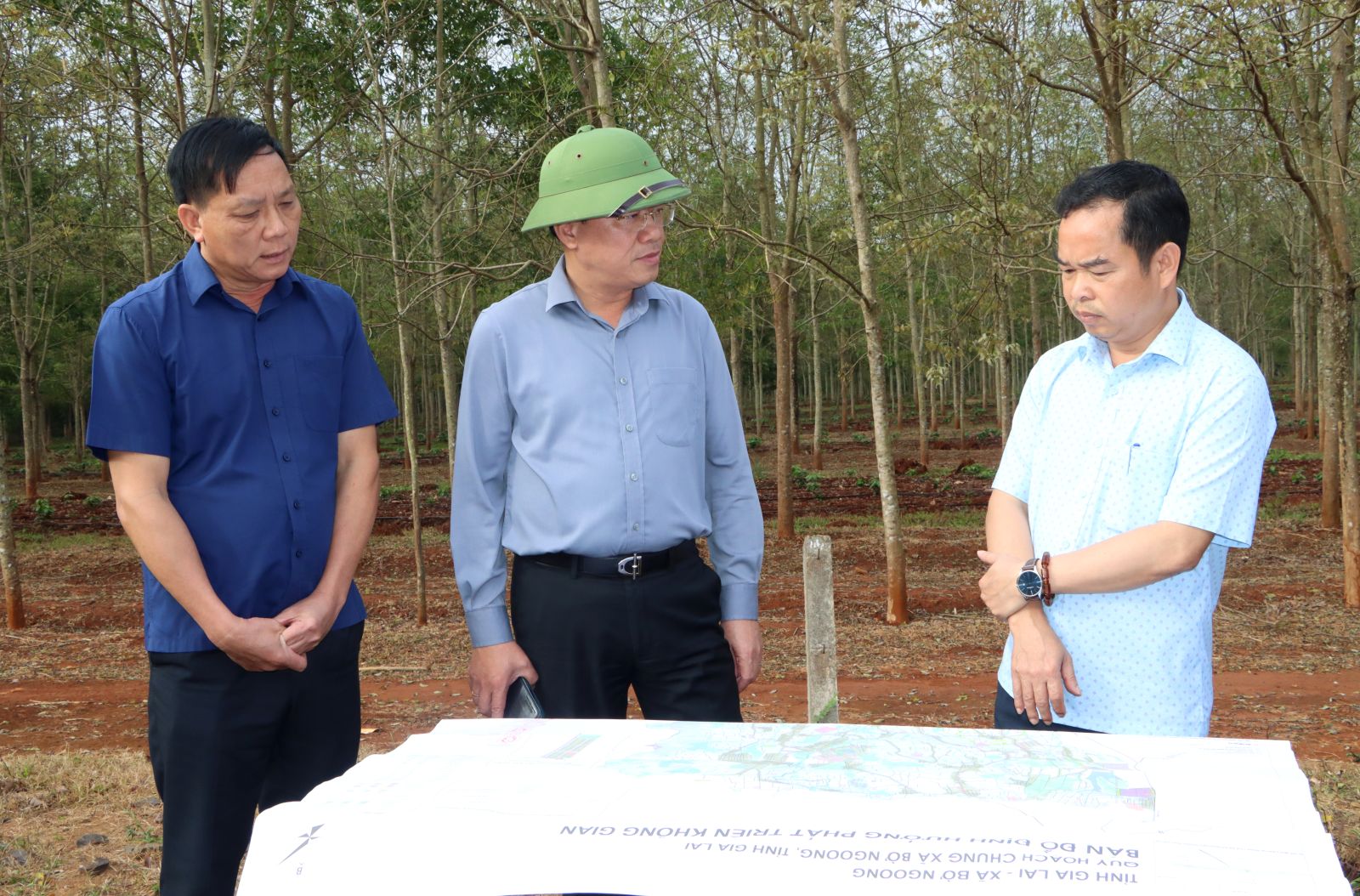 Chủ tịch UBND tỉnh Phạm Anh Tuấn (giữa) nghe báo cáo quy hoạch trung tâm hành chính xã Bờ Ngoong.
