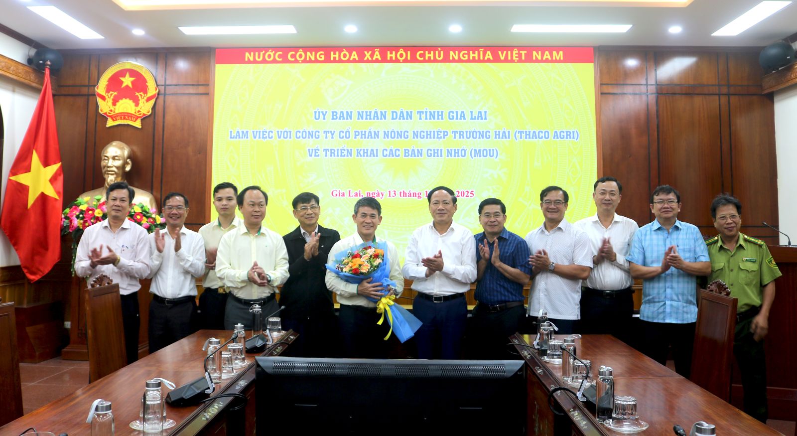 Tại buổi làm việc, ông Trần Bảo Sơn - Phó Tổng Giám đốc Tập đoàn Trường Hải (THACO) kiêm Tổng Giám đốc Tập đoàn THACO AGRI cho biết: Theo các Bản ghi nhớ đầu tư được ký kết tại Hội nghị xúc tiến đầu tư tỉnh Gia Lai vào tháng 8/2025, THACO AGRI và các công ty thành viên sẽ triển khai 5 dự án trên địa bàn tỉnh Gia Lai, với tổng mức đầu tư dự kiến là 11.000 tỷ đồng. Cụ thể: Dự án “Trồng cây lâm nghiệp kết hợp chăn nuôi bò tại xã Ia Púch”, do Công ty TNHH MTV Chăn nuôi bò Trung Nguyên làm chủ đầu tư, có tổng vốn đầu tư 4.380 tỷ đồng; 02 dự án: “Chăn nuôi theo mô hình nông lâm kết hợp tại xã Pờ Tó” và “Chăn nuôi theo mô hình nông lâm kết hợp tại xã Ia Le”, do Công ty TNHH MTV Cao su Trung Nguyên làm chủ đầu tư, có tổng vốn đầu tư 6.077 tỷ đồng; 02 dự án “Cụm công nghiệp và Trung tâm Logistics” và “Tổ hợp trung tâm thương mại dịch vụ và nhà ở”, do THACO AGRI làm chủ đầu tư, có tổng vốn đầu tư 2.025 tỷ đồng.