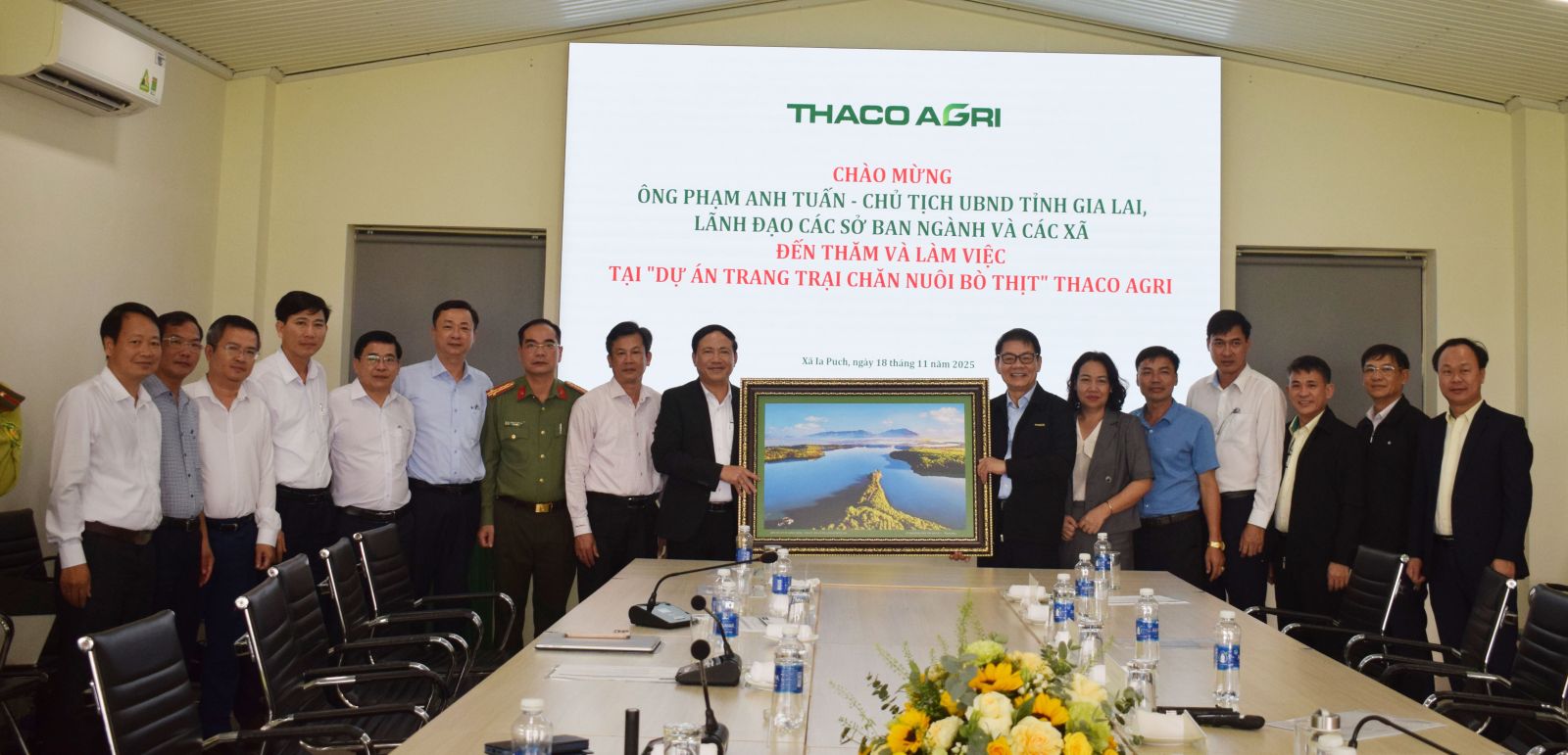 Tham dự buổi làm việc có ông Trần Bá Dương, Chủ tịch Hội đồng quản trị THACO; ông Trần Bảo Sơn, Phó Tổng Giám đốc; cùng lãnh đạo các sở: Tài chính, Nông nghiệp và Môi trường, Xây dựng, Công Thương, Ngoại vụ; Bộ Chỉ huy Quân sự tỉnh; Ban Chỉ huy Bộ đội Biên phòng; UBND các xã: Ia Púch, Pờ Tó, Ia Le.