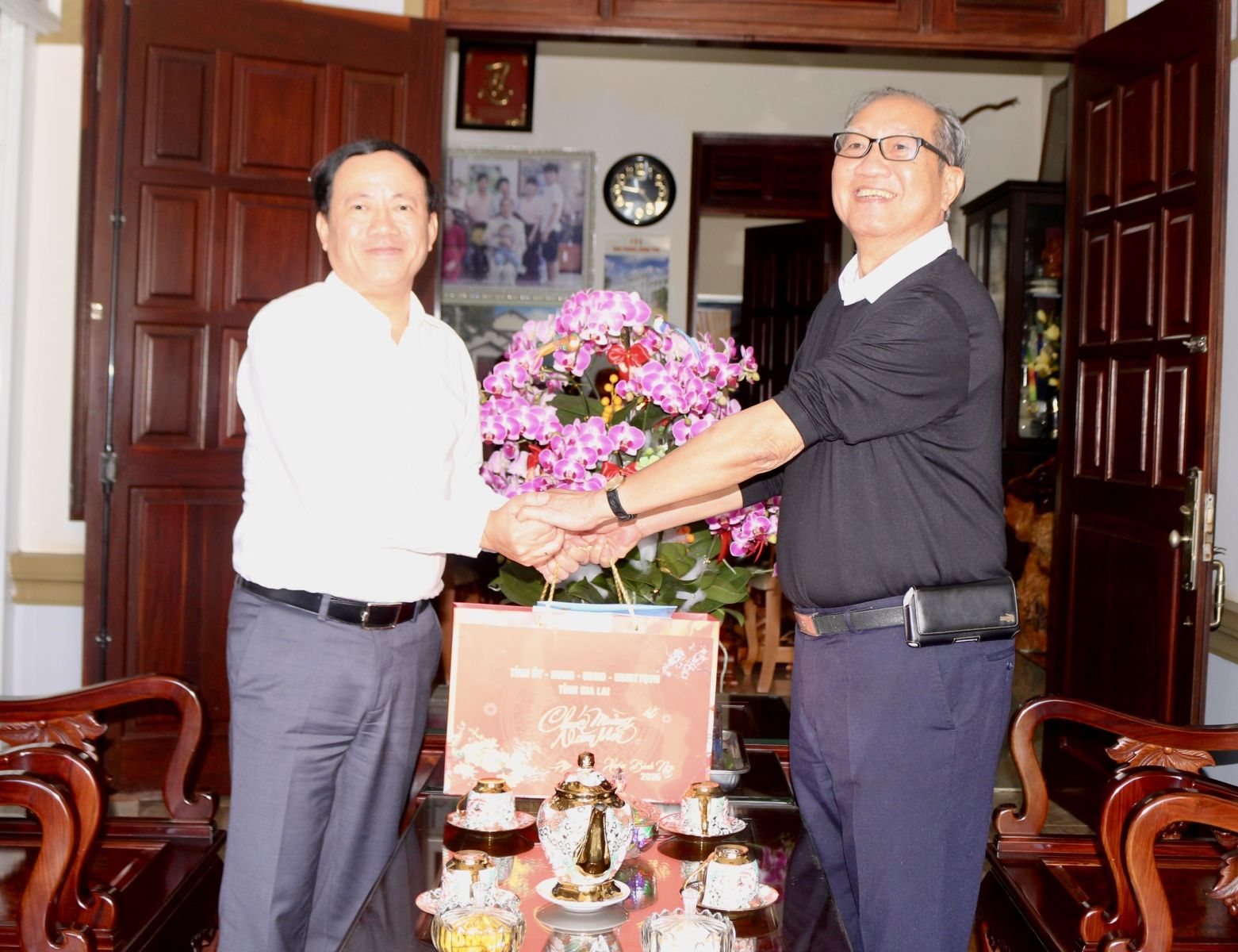 Tại các gia đình đến thăm, Chủ tịch UBND tỉnh Phạm Anh Tuấn ân cần thăm hỏi sức khỏe, đời sống sinh hoạt của các đồng chí nguyên lãnh đạo tỉnh và gia đình; đồng thời, thông tin khái quát về tình hình phát triển kinh tế – xã hội của tỉnh trong năm 2025 với nhiều kết quả tích cực, toàn diện trên các lĩnh vực. Nổi bật là việc khởi công, triển khai đồng loạt nhiều công trình, dự án trọng điểm có tính chất động lực, tạo đột phá về kết cấu hạ tầng, mở rộng không gian phát triển và tăng cường liên kết vùng như: Đường cao tốc Quy Nhơn – Pleiku; triển khai mở rộng hạ tầng vành đai đô thị lớn tại Pleiku cùng nhiều công trình đầu tư công nhằm thúc đẩy phát triển kinh tế – xã hội.