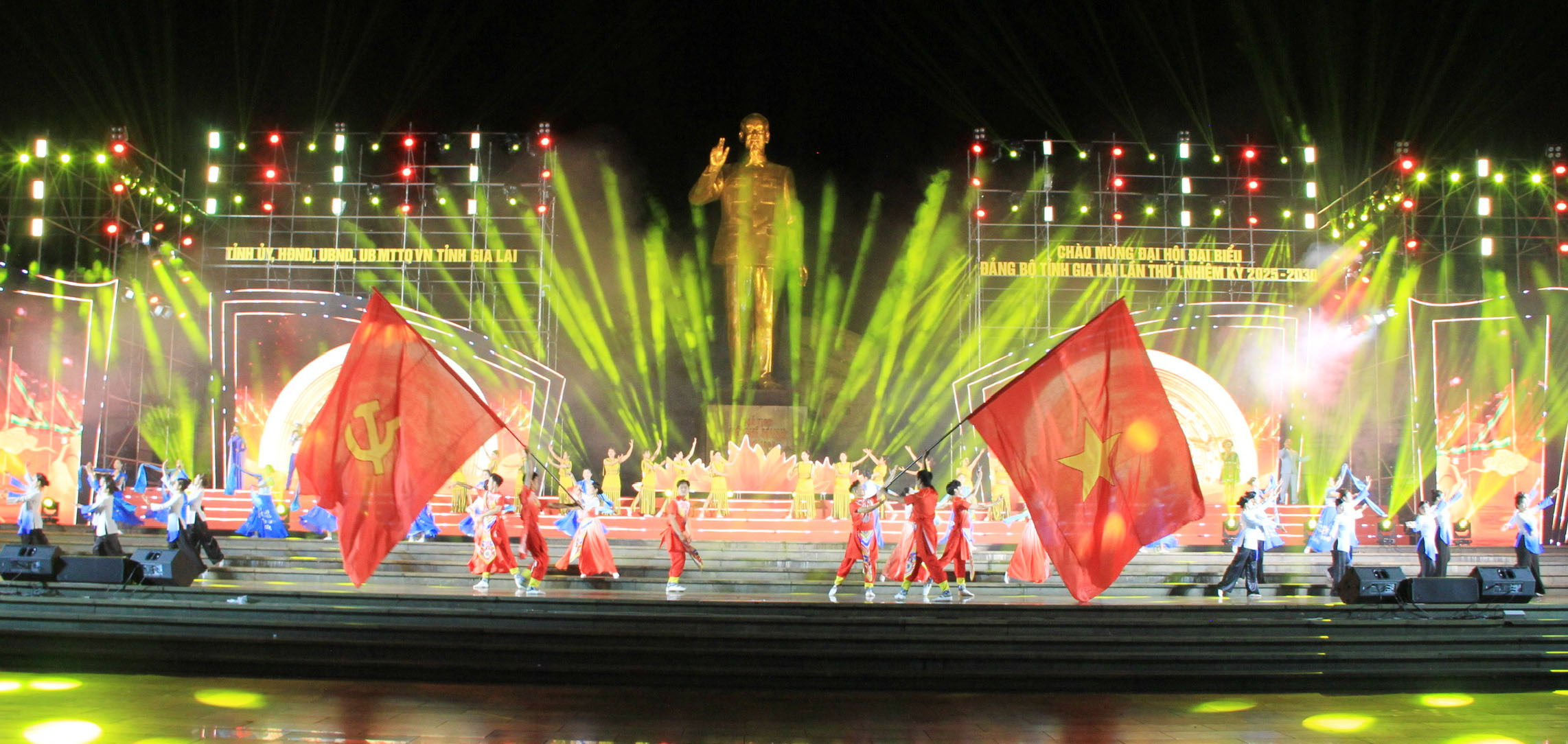 Những tiết mục văn nghệ đặc sắc vừa ca ngợi Đảng, Bác Hồ, quê hương và niềm tin vững bền vào chặng đường phía trước của Đảng bộ, chính quyền và nhân dân tỉnh Gia Lai.