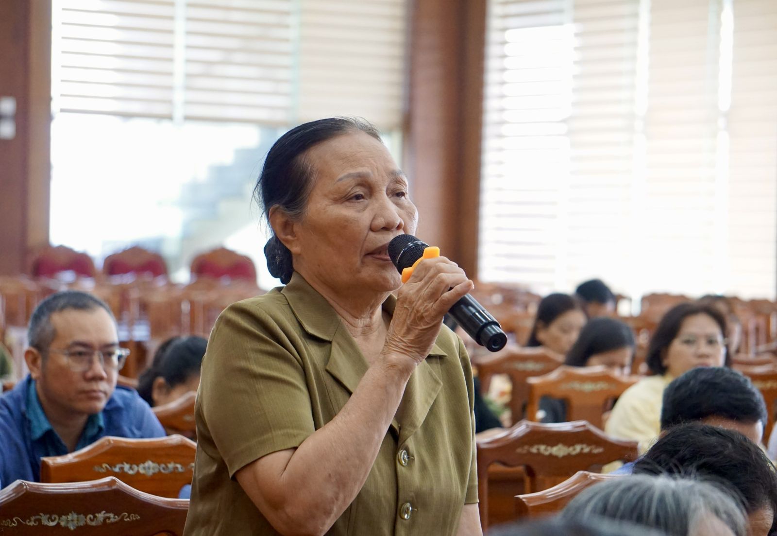 Cử tri phường Quy Nhơn chăm chú lắng nghe chương trình hành động của các ứng cử viên HĐND tỉnh