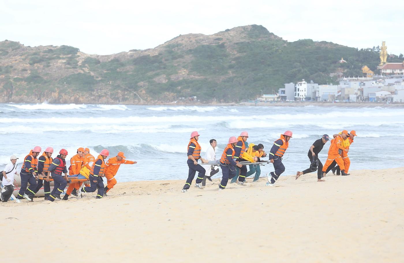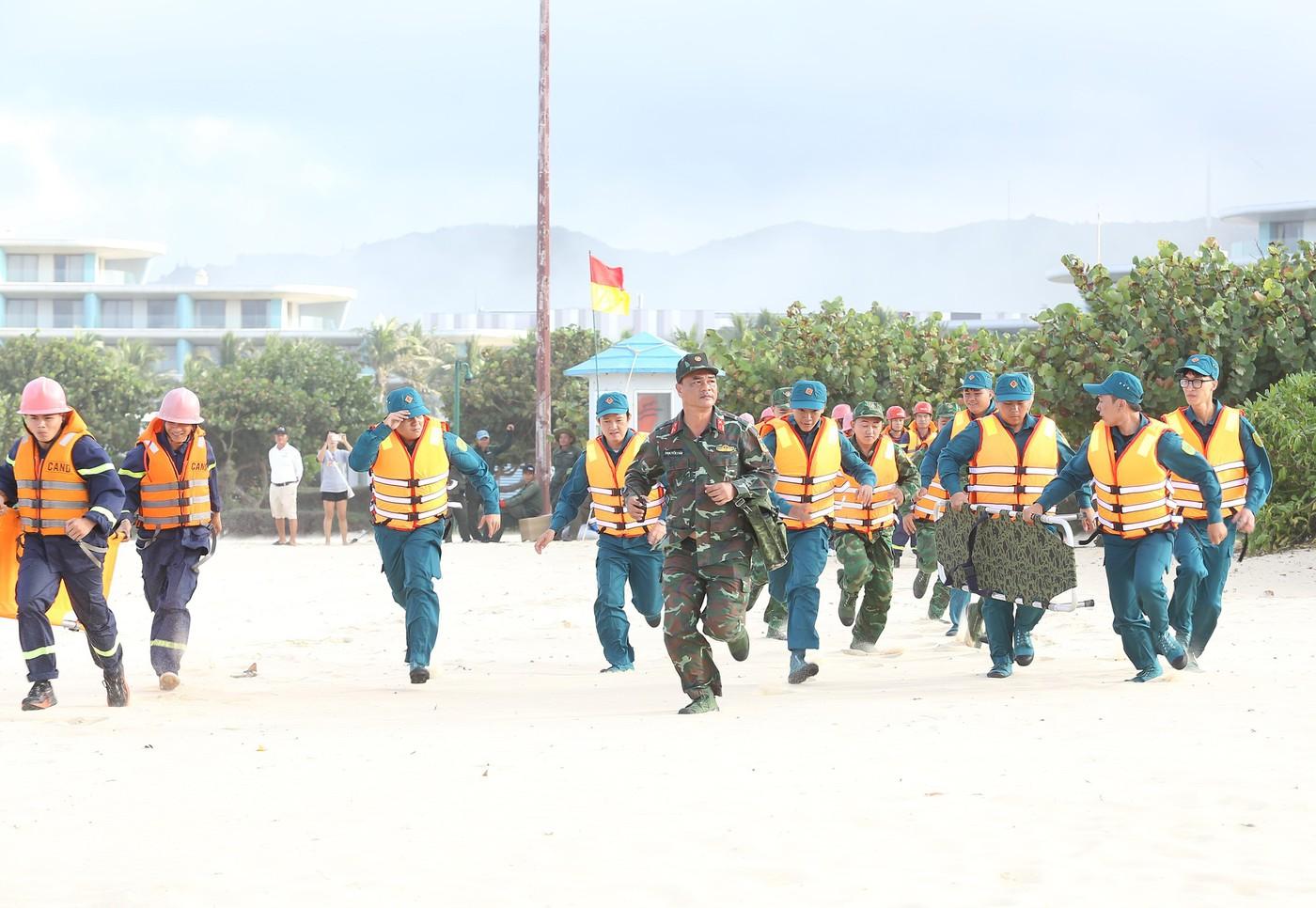 Cuộc diễn tập được tổ chức theo mô hình liên ngành - đa lực lượng, mô phỏng tình huống tàu bay quốc tế gặp nạn trên khu vực ven biển Quy Nhơn. Ảnh: H.P
