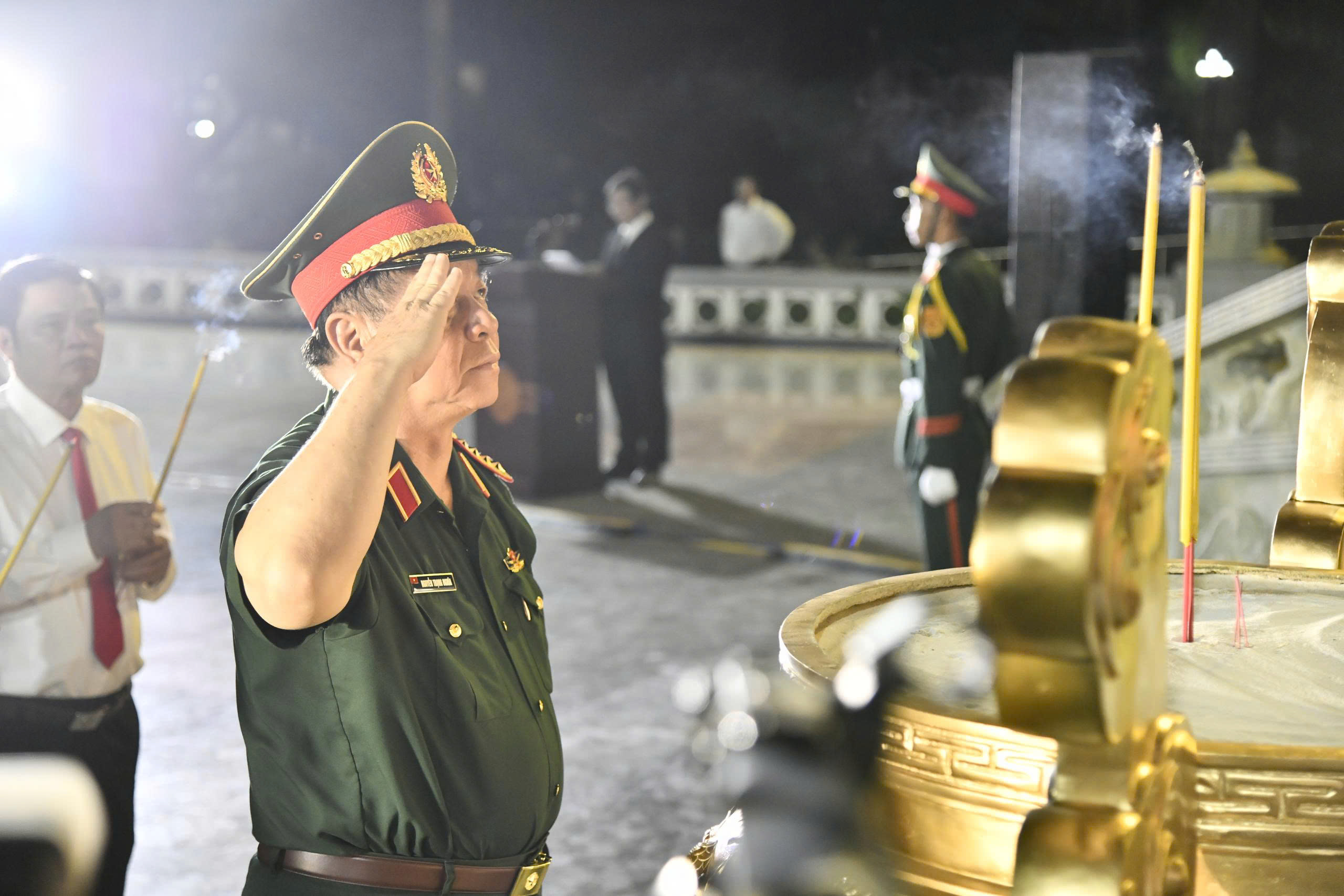 Đại tướng Nguyễn Trọng Nghĩa thắp hương ở từng phần mộ liệt sĩ